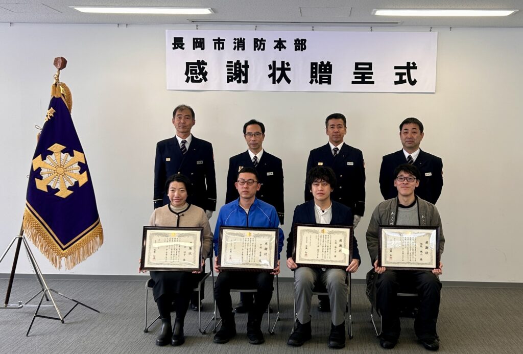 2026年1月9日、長岡市消防本部にて感謝状贈呈式が行われ、長岡市消防長 近藤知彦さまより、感謝状をいただきました。